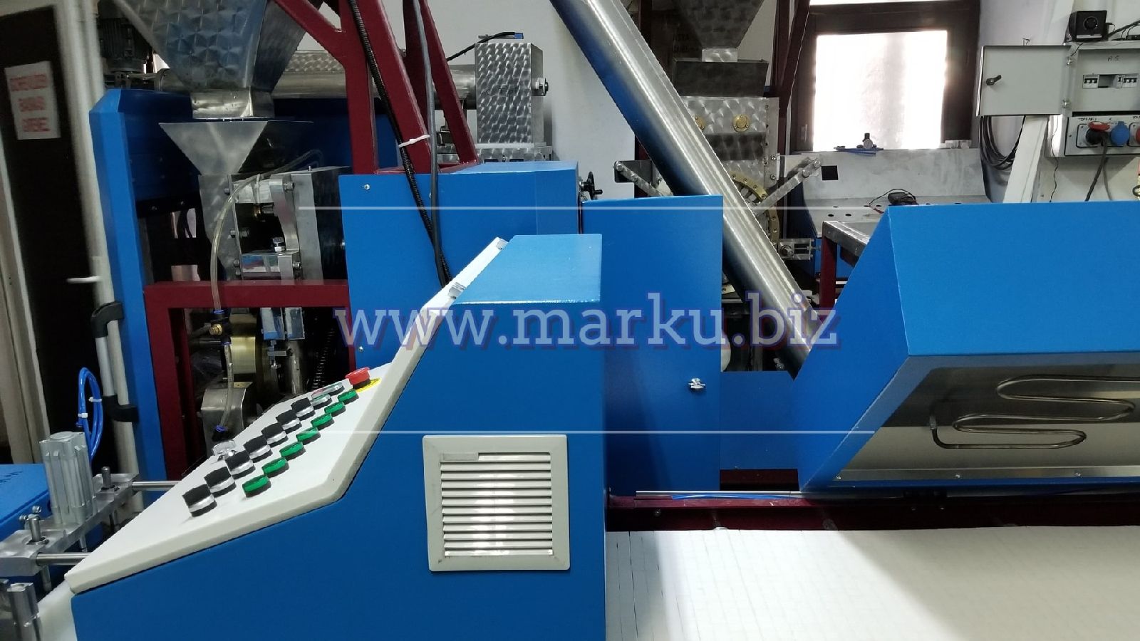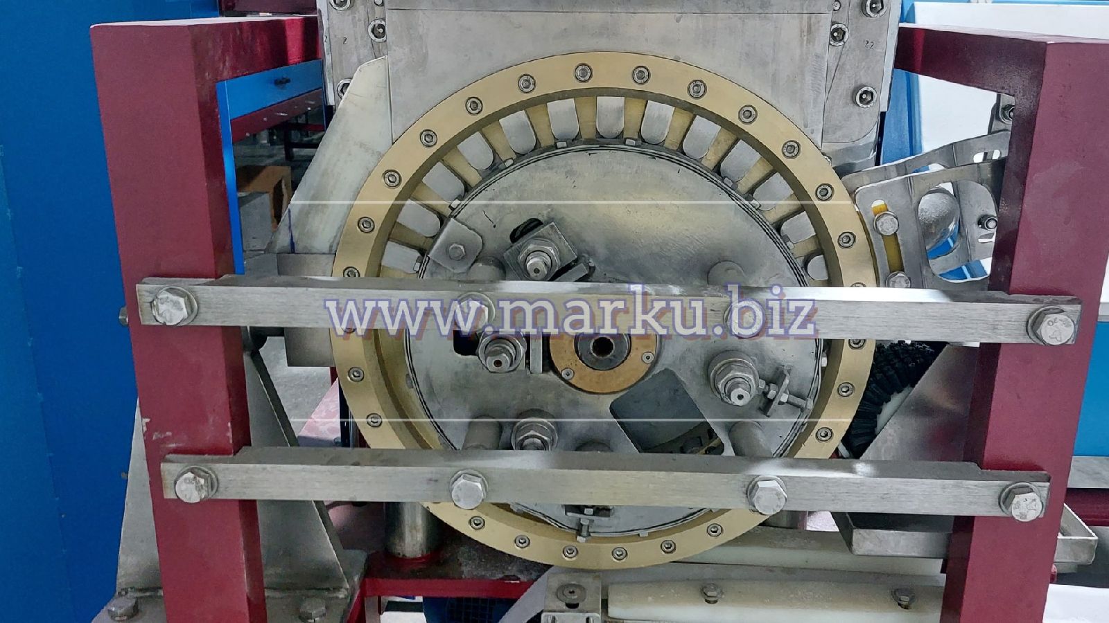 Máquina que produce terrones de azúcar duros mediante un sistema de prensado y triturado de tipo carrusel. Los terrones formados deben llenarse en cajas de plástico y dejarse reposar.