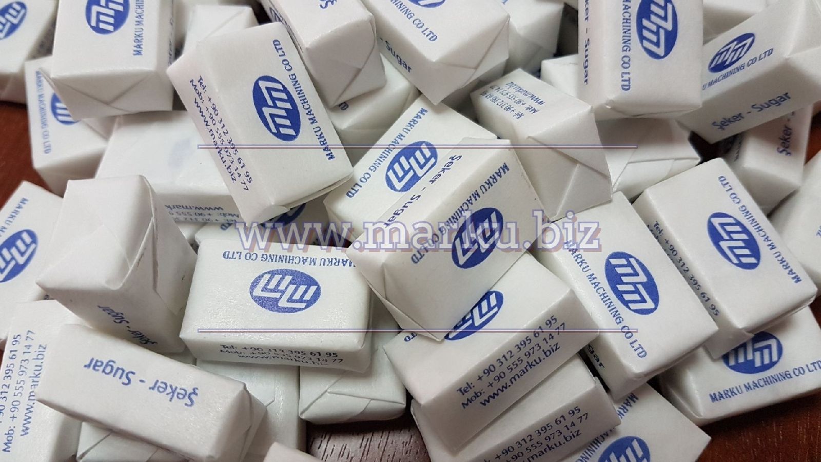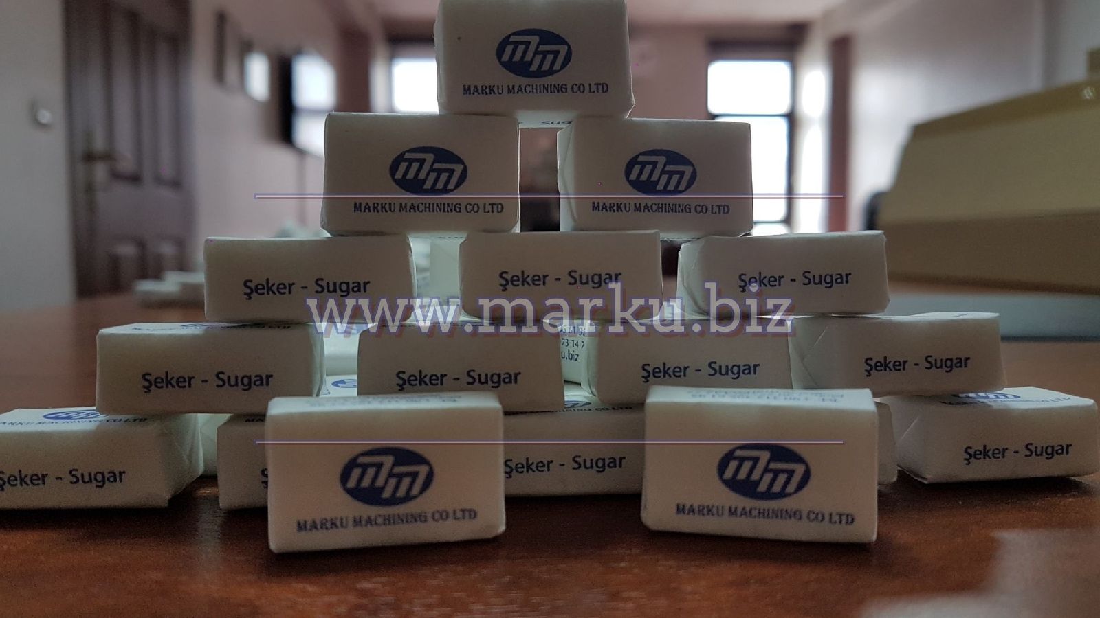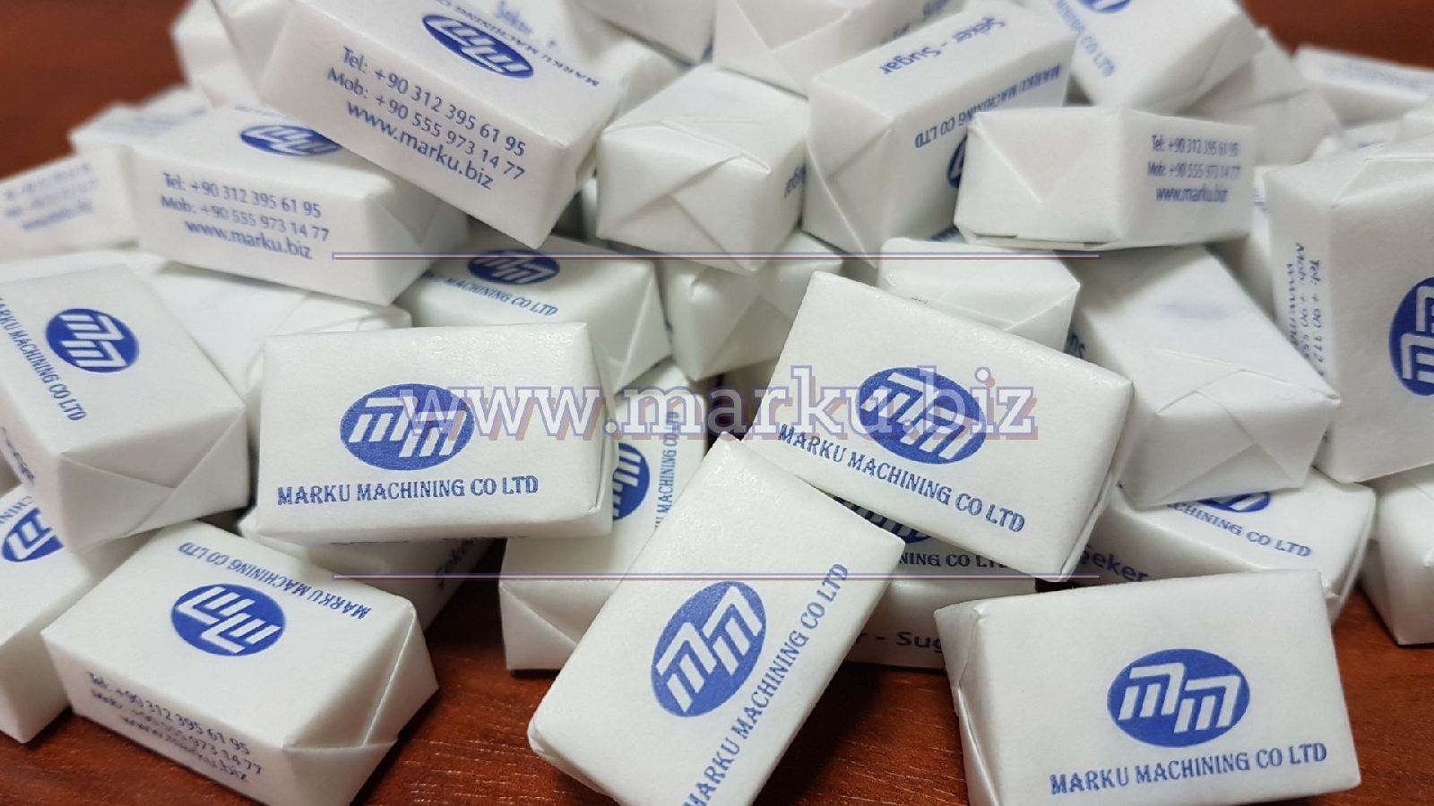 Küp şekerleri ikili halde mektup şeklinde sarma makinesi