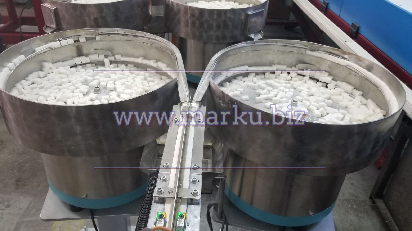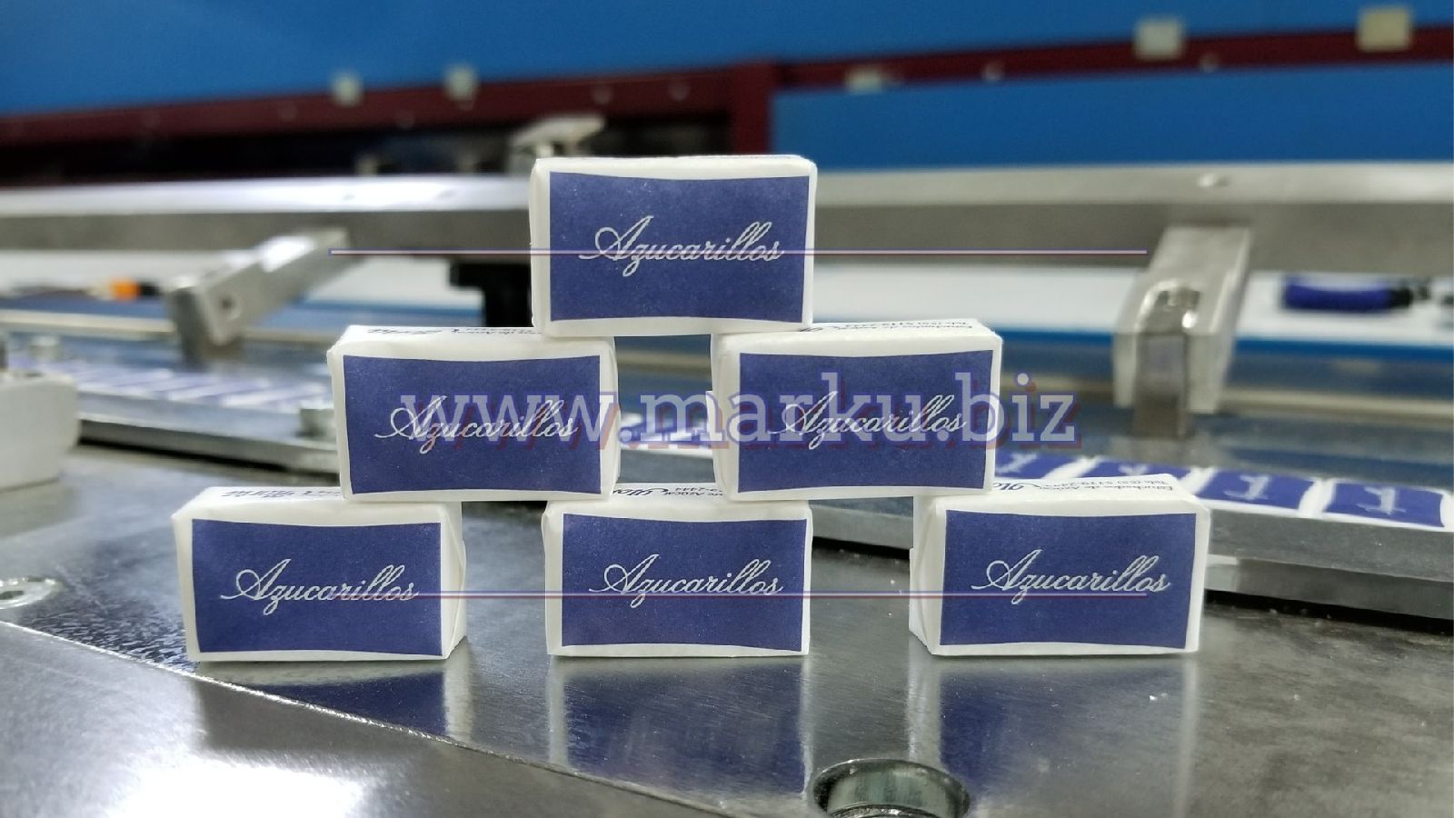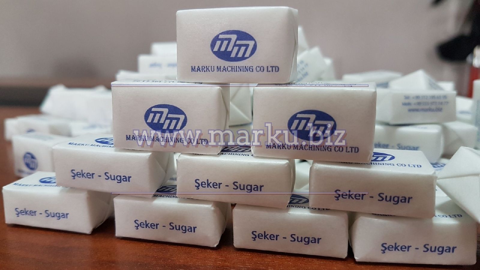 Küp şekerleri ikili halde mektup şeklinde sarma makinesi
